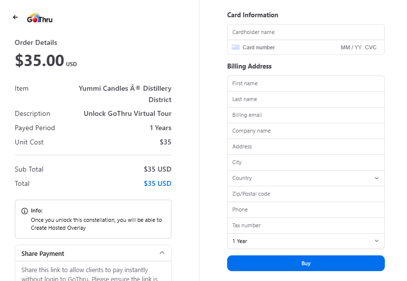 If you've built your own overlay with all of the plugins but need to take a break (unsubscribe) from GoThru or want to switch your subscription from Pro to a free plan, you can still keep the overlay by paying it per tour for a year.
