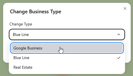 4. Change the tour from Blue line to business tour. Select Google Business then press change.