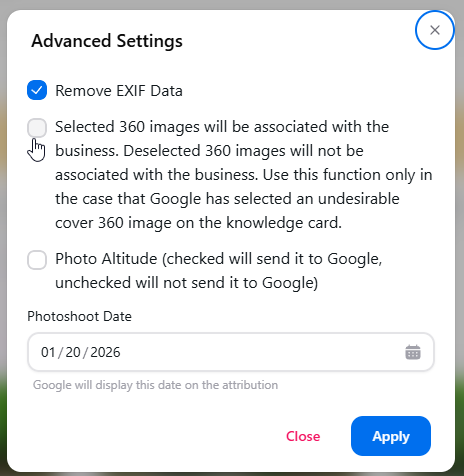 6. Click Advanced to transform this Google Business tour into a Blue dots.