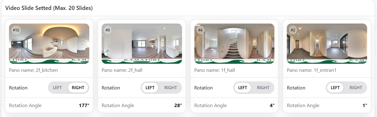 5. Each thumbnail in the film strip has a number between the arrows. This number represents how many degrees the panorama will rotate before jumping to the next panorama.