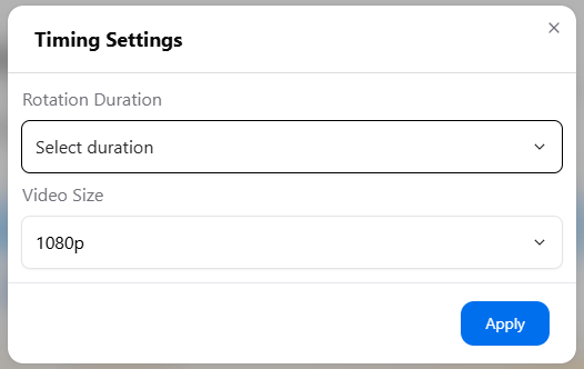 7. Select the duration for one panorama to rotate between 6 and 60 seconds. Select your preferred video size.
